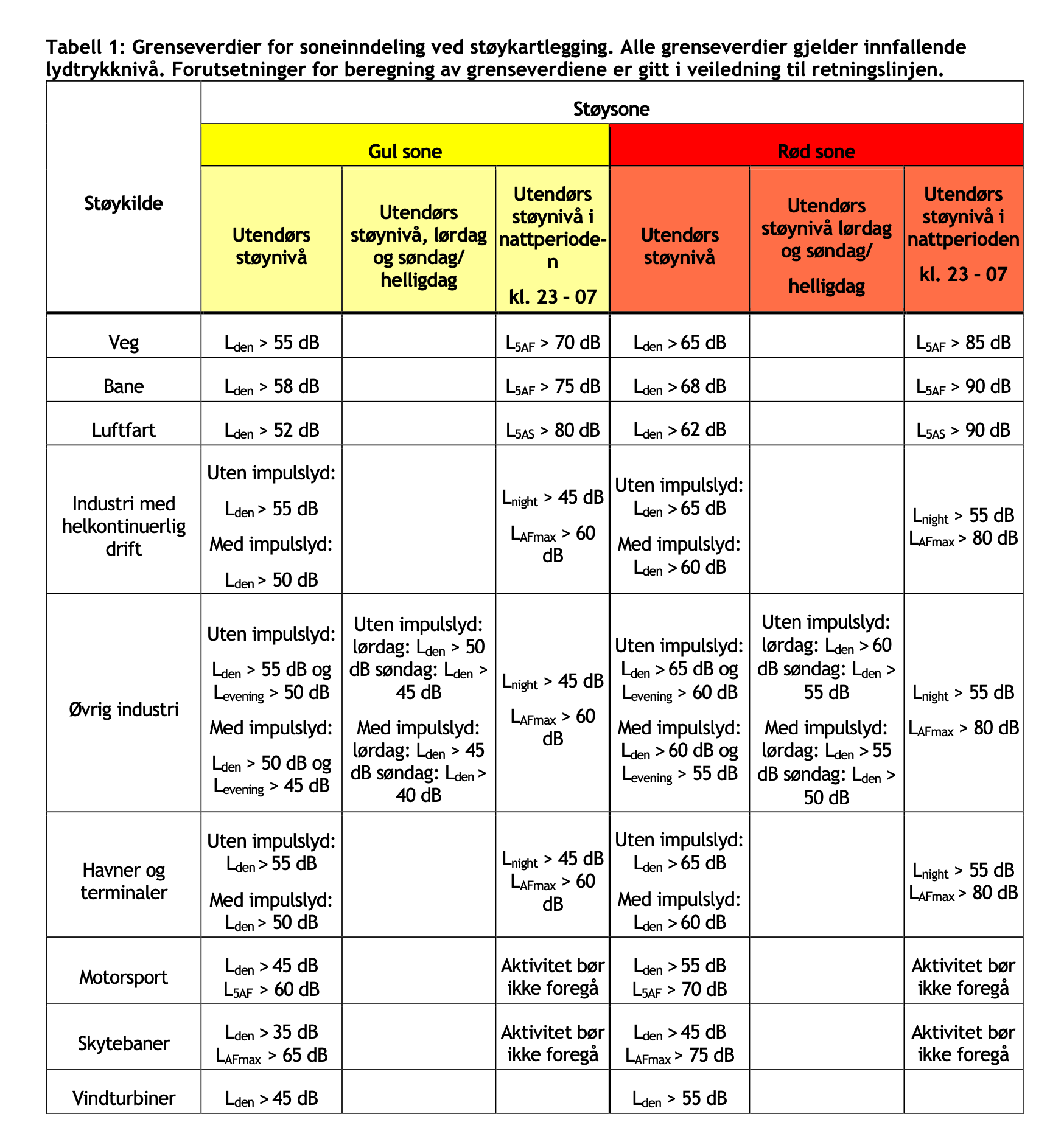 Nasjonal støyforskrift ( T- 1442/2021) anbefaler at støynivå fra luftfart ikke overstiger 52 dB og maks 80 dB utenfor vinduer til rom med støyfølsomt bruksmål. Selv ved prøveflygningen (som støyer mye mindre enn take-off/landing) ble det mål støynivåer over 90 dB.