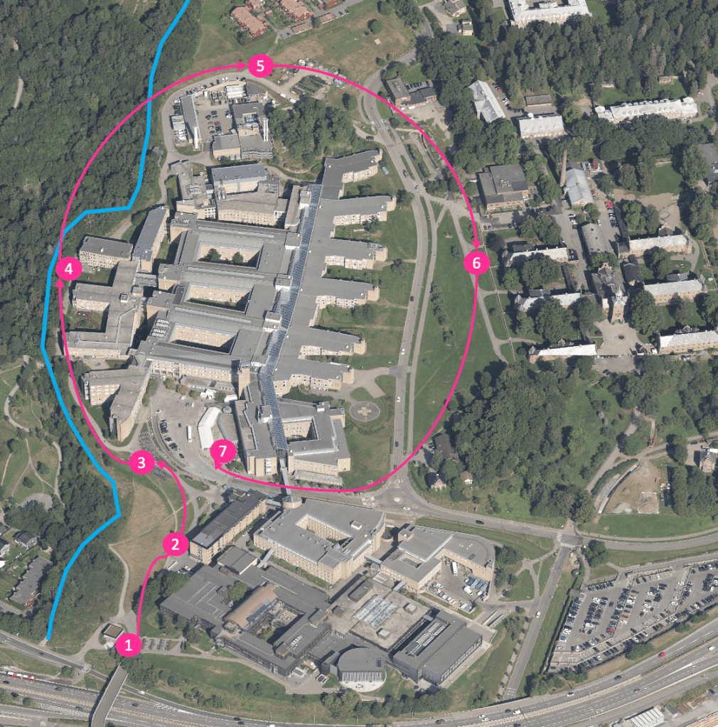 Vi starter ved gangbroen over Ring 3 fra Blindern. Vandringen er planlagt å vare ca. 1 time og har 6 stopp underveis der det vil bli 5 minutters innlegg som forklarer planlagt endringer og belyser konsekvenser